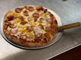 Pepperoni, Canadian bacon, sausage, ground beef and mozzarella cheese.